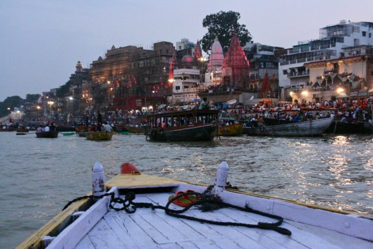 Por la tarde decidimos dar un paseo en barca y ver la Puja o ritual religioso. ADVERTENCIA. Contratamos un paseo en barca de una hora por los ghats del norte más significativos. Aproximadamente 10 euros por 4 personas. En el paseo nos dijeron que podríamos ver la Puja. Tras el recorrido por los ghats la barca se situó frente al lugar de la Puja más conocida. A los pocos minutos del inicio de la Puja vimos que el ritual no daba mucho más de sí y además se consumía la hora que habíamos apalabrado. Le dijimos al muchacho que tripulaba la barcaza (que no era con quien habíamos hablado) que teníamos que volver. El muchacho nos dijo que no era posible puesto que estábamos bloqueados por decenas de barcas que se habían situado en la misma zona para ver la Puja. Le dijimos que habíamos contratado una hora; el muchacho no le dio importancia o no nos entendió… Lo cierto es que tras tragarnos toda la ofrenda (que resulta muy pesada) al llegar al lugar de desembarcar el muchacho con el que habíamos hablado inicialmente nos quería cobrar 2 horas (20 euros). Nos negamos rotundamente. Imaginamos que debe ser una práctica habitual. Te dan el precio de 10 euro por una hora. Te meten conscientemente en una situación de la no puedes salir y te hacen pagar por el tiempo extra que supone meterse en todo el meollo de las barcas. Os aconsejamos que si lo hacéis advirtáis que eviten el quedarse bloqueados por las otras barcas.