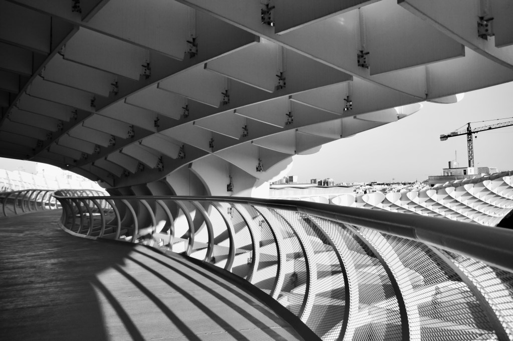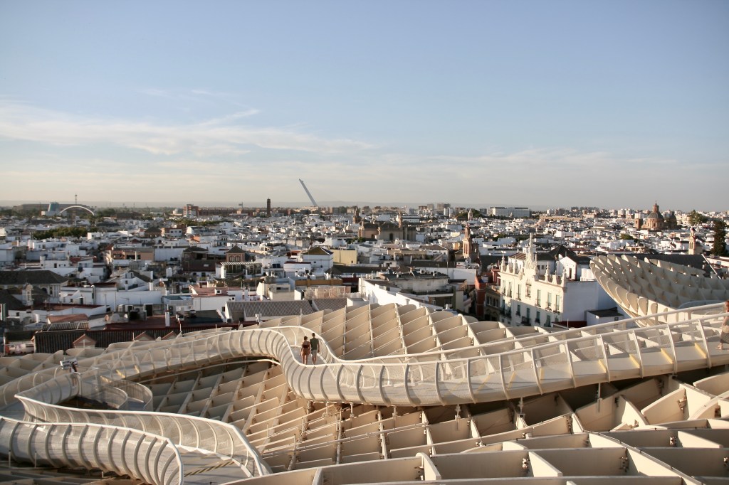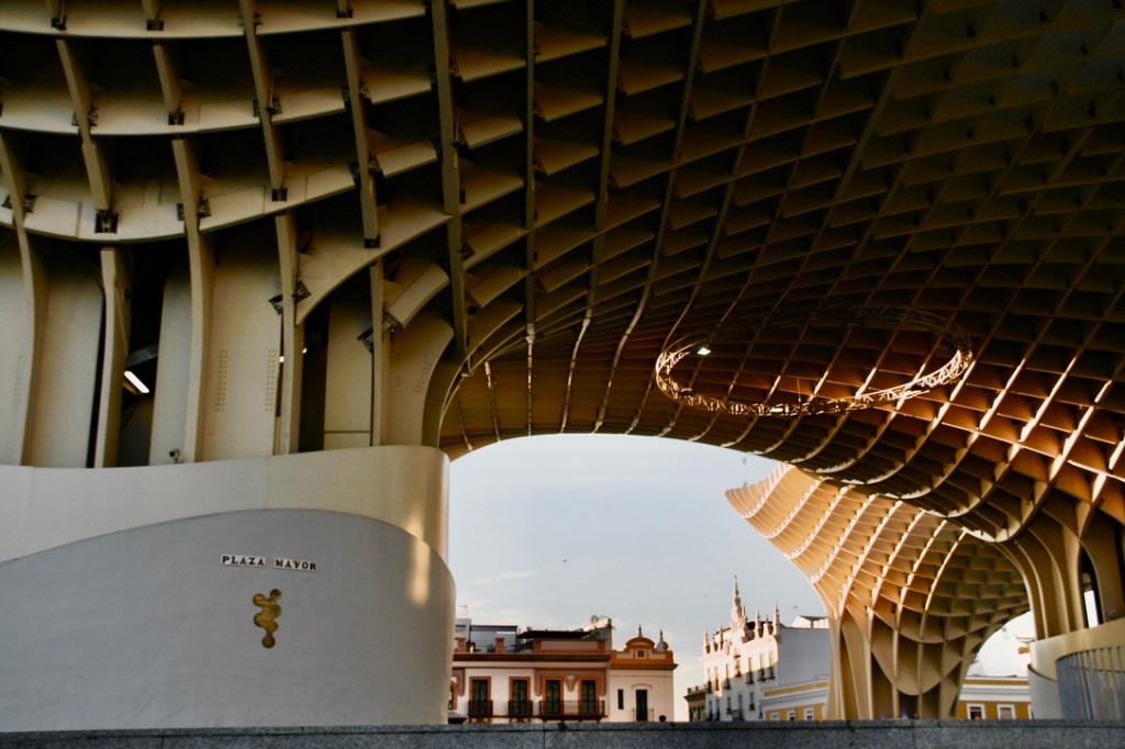 Empezamos por las Setas de Sevilla quizá es lo menos sevillano que tiene Sevilla, pero nos pillaba de paso y por supuesto hay que verlo y subirlo. Desde su altura se observa todo Sevilla y… hay que decirlo, no es una vista sorprendente. Si es muy amplia, pero más nada. Sevilla es una ciudad muy plana y su línea de cielo o “skyline” no es muy especial. A pesar de ello hay que subir. El precio para los que no somos de Sevilla es de 5 euros y las vistas, sin ser bonitas, merecen la pena y la estructura es muy sorprendente. Y por cierto, no entro en la disputa de si me gusta o no esta construcción tan carísima y con un estilo tan contemporáneo para una ciudad con un estilo tan definido y tan ajeno a las nuevas vanguardias del diseño y la arquitectura.