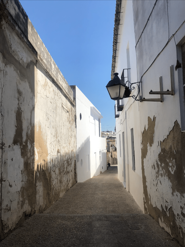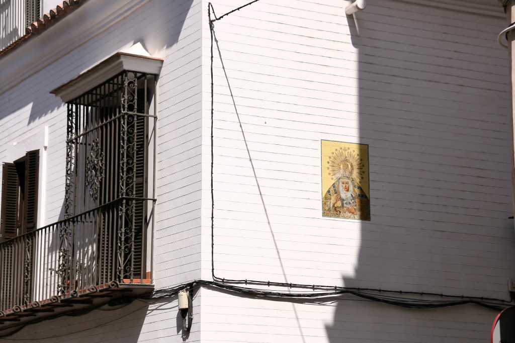 Esa gran ciudad que te va regalando bellísimos rincones donde la vista se alegra por los colores albero, sangre o azulones en contraste con el blanco intenso, o te sorprendes por esos árboles creando bellos juegos de sombras, o bien esas miradas de imágenes religiosas de azulejería que te vigilan desde sus muros.