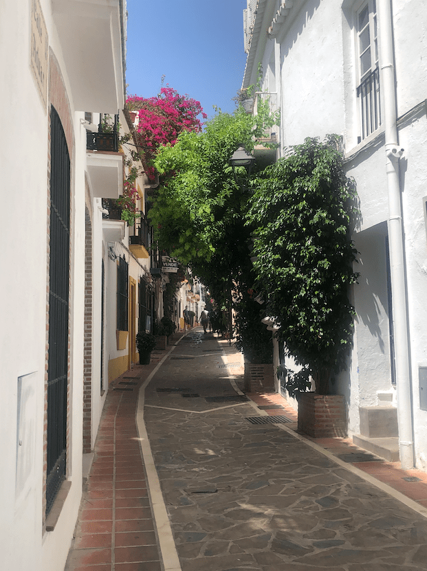 El recorrido hasta llegar a la costa es muy montañoso y bonito, a la vez que de arriesgada conducción. A un lado dejas el Parque Natural de la Sierra de Nieves y más adelante y al otro lado vas observando el Paraje Natural de Los Reales de Sierra Bermeja. Nos sorprendió mucho el manto verde que lo cubre casi absolutamente todo. Según te vas acercando a la playa se van multiplicando las casas o chalets, así como va aumentando el nivel de estas viviendas. Algunas de ellas son tan ostentosas que el nivel de envidia queda sobrepasado para dar lugar a sensaciones malignas. Es la zona de Benahavís, el vecindario más lujoso de España, según algunos medios.
