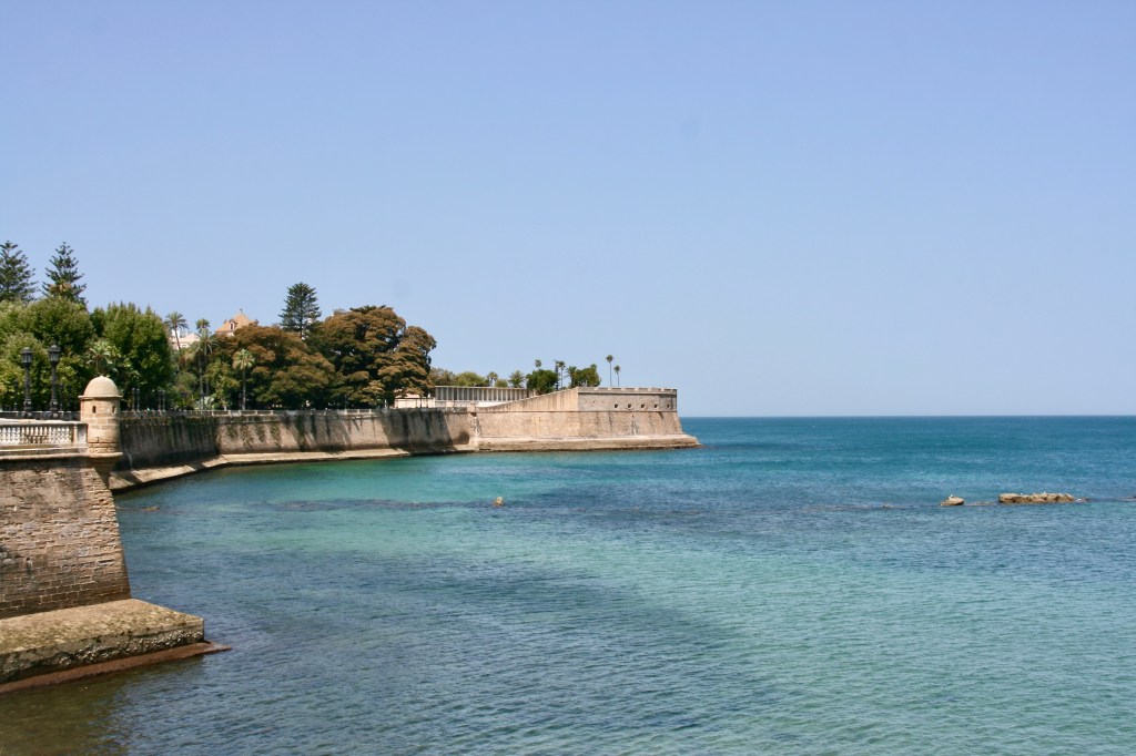 Hoy tocaba pasear con detalle el Norte de la Tacita de Plata. Empezamos por las bellas y elegantes plazas de San Antonio (la del aparcamiento), plaza de la Mina, plaza de San Francisco, con dos librerías de viejo, la plaza España, con su original conjunto de torres y el monumento a la Constitución de 1812. Además hicimos el recorrido al borde del océano. En este recorrido te adentras en el Parque Genovés, en donde destacan inmensos ficus, además de otros muchos curiosos árboles, y luego al Baluarte de la Candelaria, un muro defensivo que te ofrece una fresca y magnífica vista al inmenso azul.