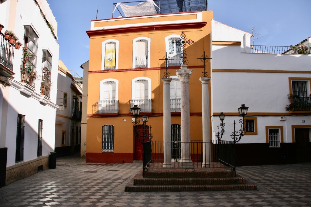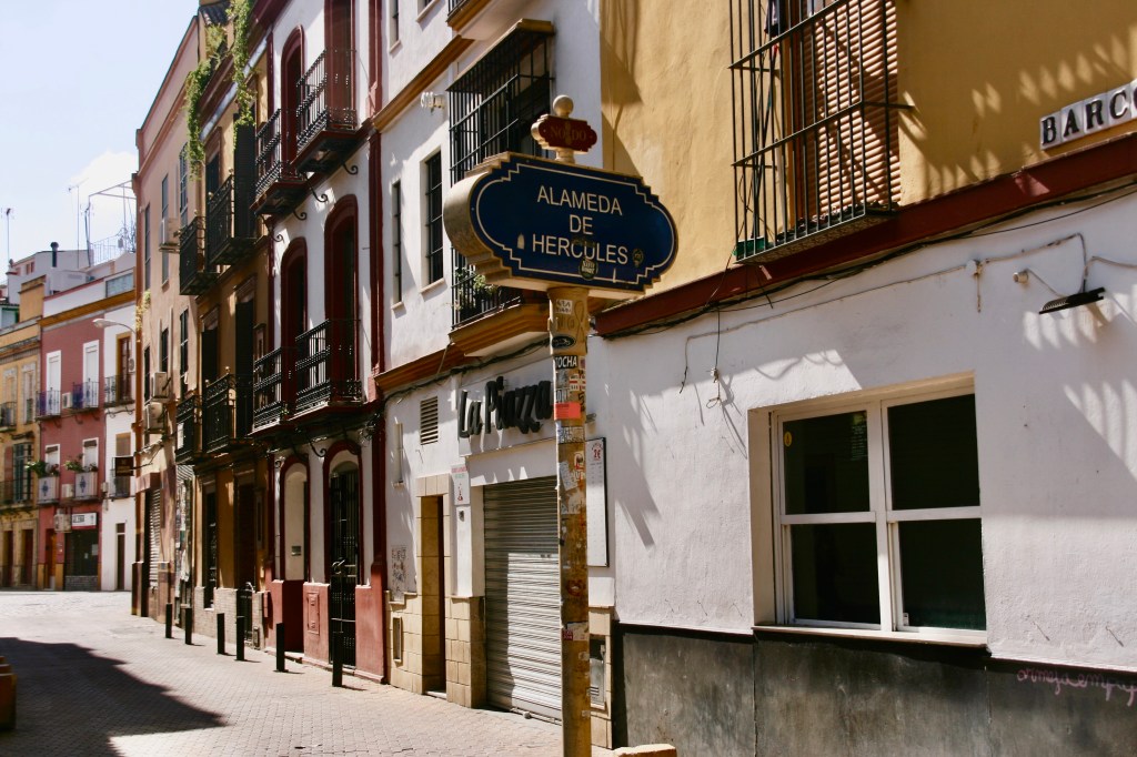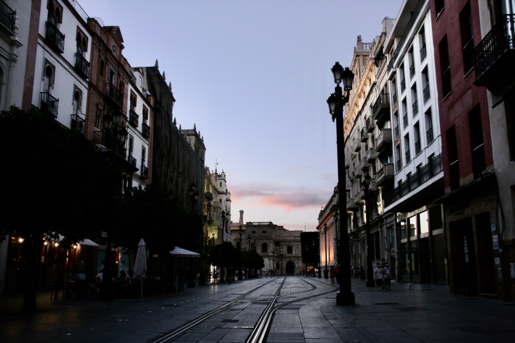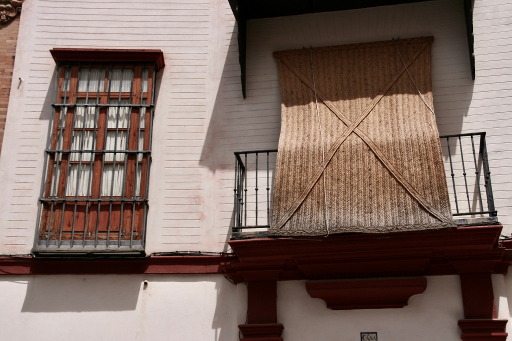 Nos vamos de Sevilla. Esa gran red de calles tortuosas con un trazado desordenado de edificios de 2 o 3 plantas, de fachadas blancas con grandes y coloridos marcos que realzan puertas y ventanas protegidas por retorcida rejería.