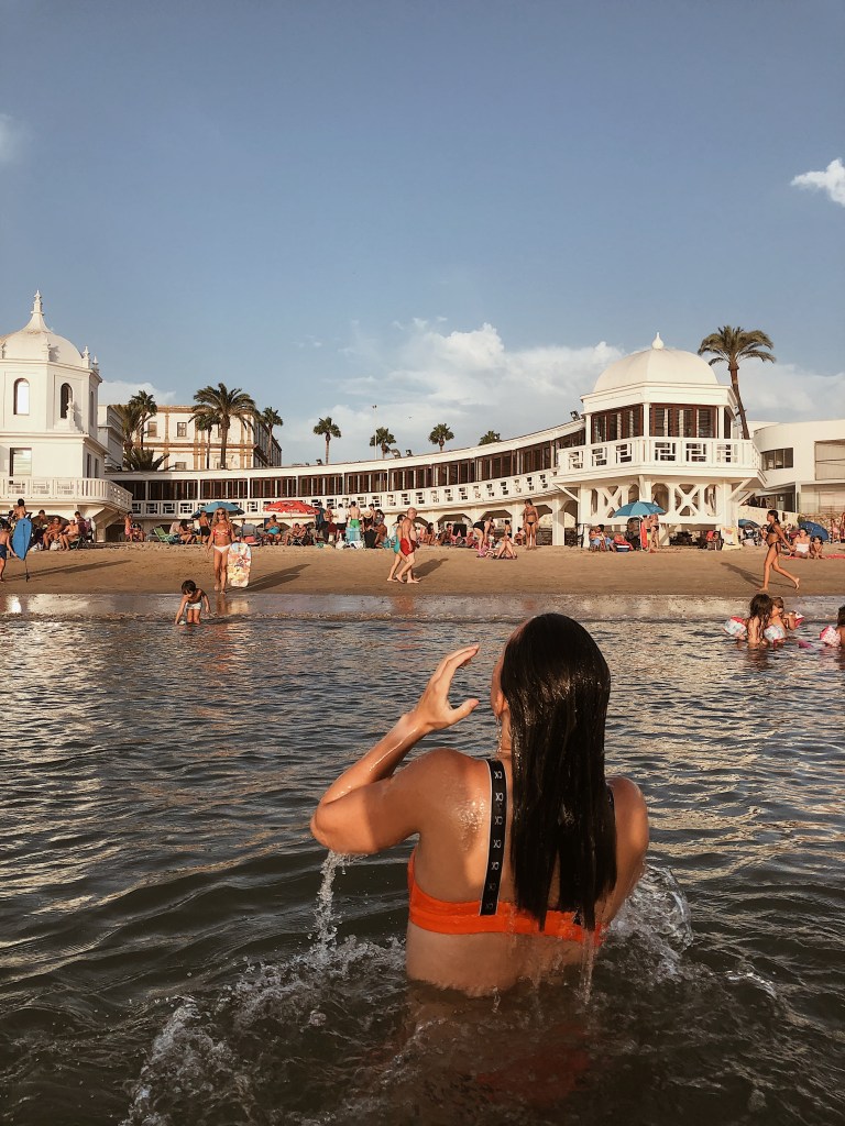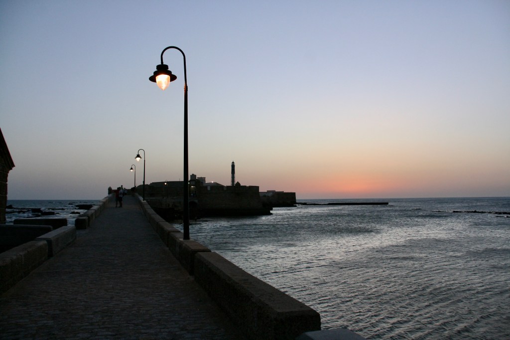 Fuimos dejándonos llevar por el movimiento de la gente para llegar hasta los puntos que queríamos visitar: zona del Mercado, Catedral (parte barroca y parte neoclásica que tardó 116 años en ser construida), Teatro romano (sorprendente este teatro tan metido en plena ciudad) y por último nos fuimos a ver la playa de La Caleta y el atardecer.