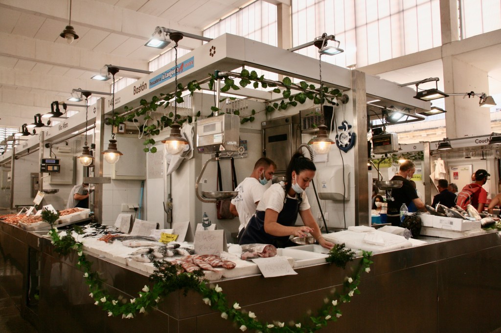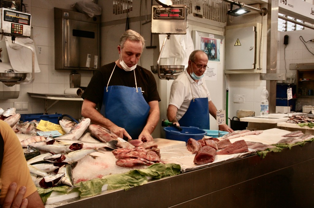 Muy cerca de esta torre está la plaza de la Flores y el interesantísimo Mercado, especialmente la parte de los pescados. Aquí aprovechamos para comprar productos de la zona: queso de oveja payoya, atún, aceitunas con sabor a berenjena, pan de pueblo… En general precios bajísimos y calidad y sabor altísimos. Con lo que compramos nos fuimos a comer al apartamento. En este aspecto hay que valorar la ventaja que supone contratar un apartamento en lugar de una habitación de hotel puesto que te permite cocinar y comer alrededor de una mesa como si estuvieras en tu casa.