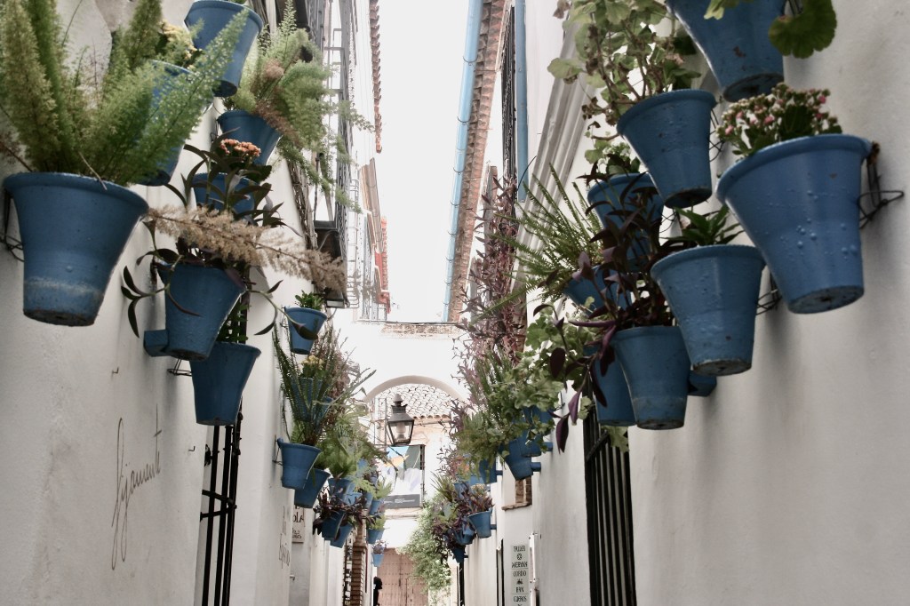 Es una ciudad donde el blanco de las fachadas se lleva casi todo el protagonismo. El uso de otros colores para decorar las fachadas se reduce mucho. Aquí la altura de las viviendas se reduce con respecto a Sevilla. Eso sí, el trazado de las calles vuelve a ser una maravillosa locura que esconde múltiples pequeñas plazas con gran cantidad de coquetas fuentes. Además el pavimento suele ser de piedras de río haciendo dibujos. En general y con respecto a Sevilla, Córdoba es más austera, más sobria, pero con la misma magia y embrujo.