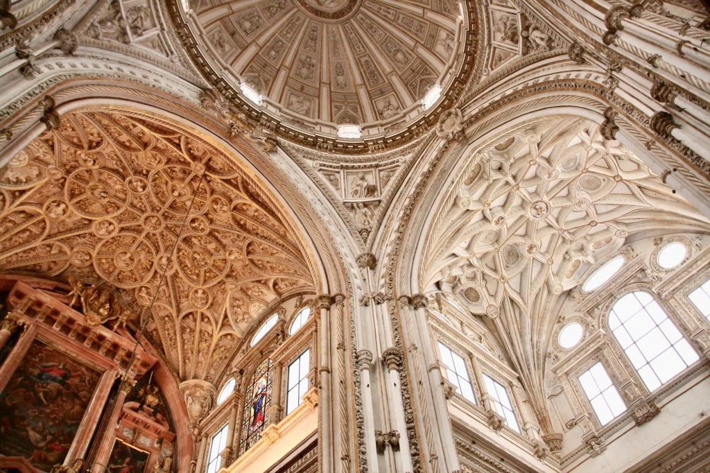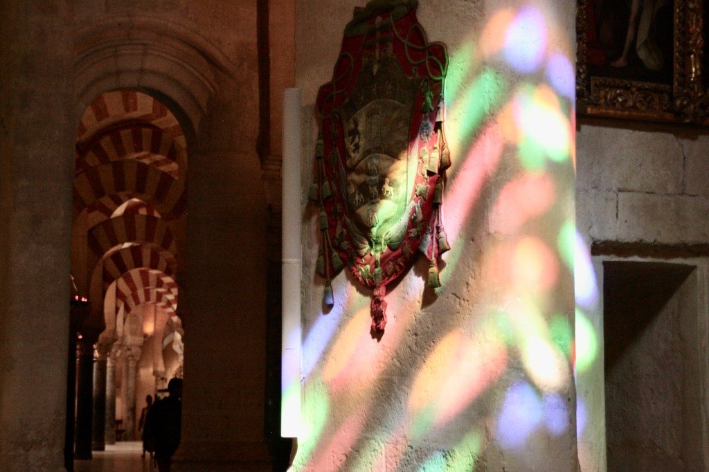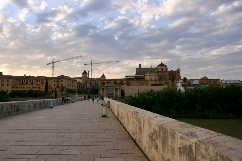Seguimos directos hasta el paseo paralelo al río. Luego llegamos a la Mezquita para rodearla; lo cierto es que desde fuera y a nivel de calle el edificio no llama mucho la atención si no fuera porque sabemos bien el tesoro que es. Es cierto que abarca una gran superficie rectangular delimitada por altos muros acabados en unas “almenas” decorativas, alguna torre, y lo que sí son muy especiales son las puertas musulmanas con esos bellísimos arcos. Hoy solo tocaba por fuera.