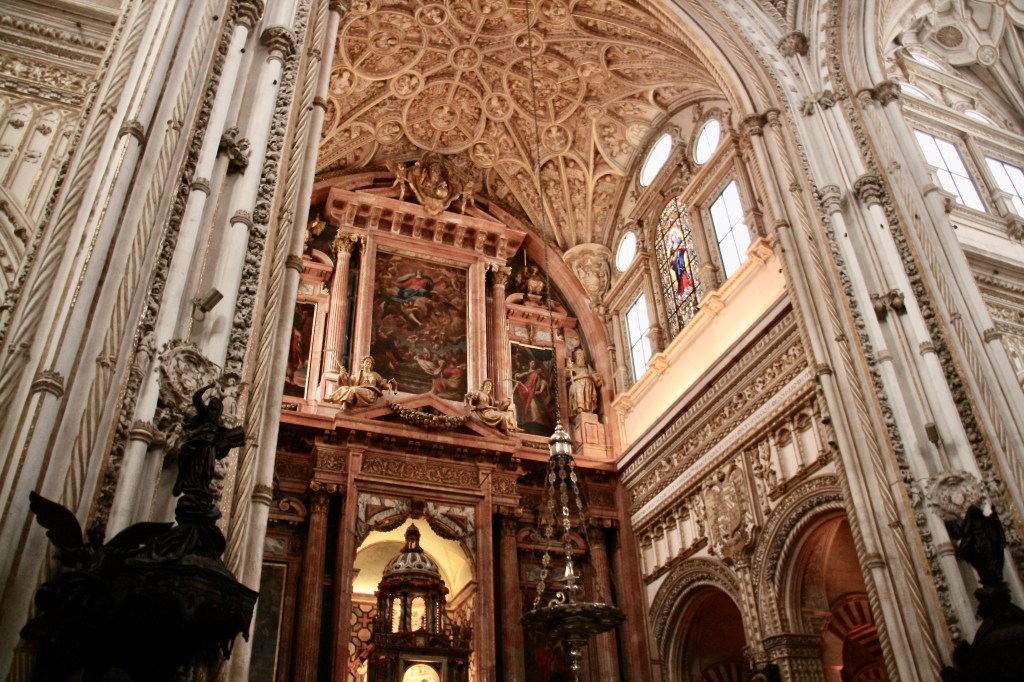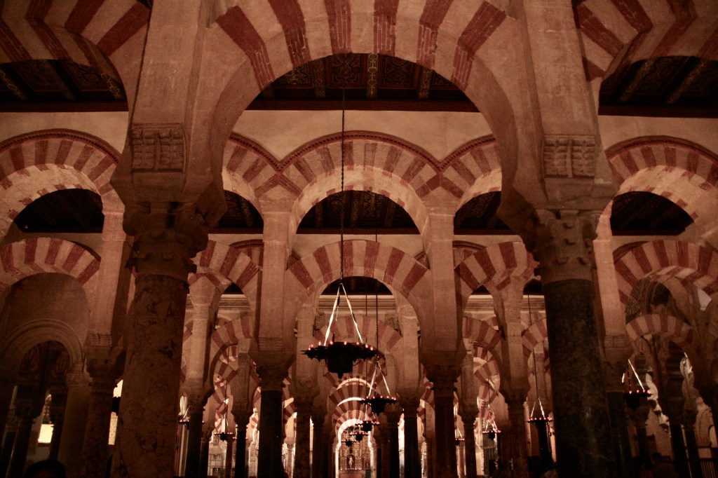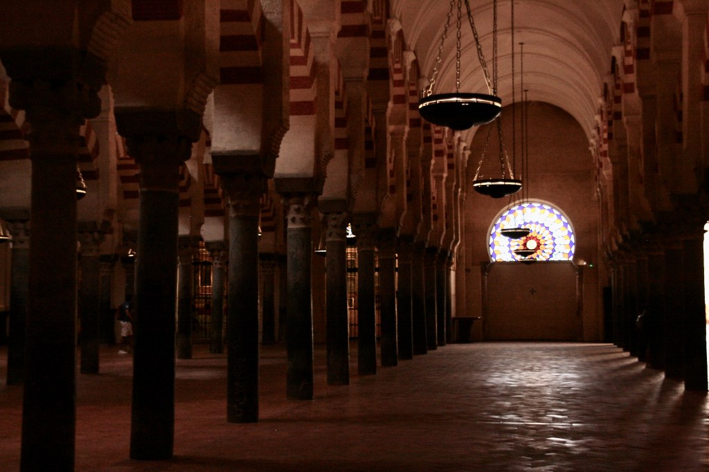 Tras un breve descanso nos fuimos a ver La Mezquita. Este monumento suele aparecer siempre en los libros de texto en el tema de la llegada de los musulmanes a la Península Ibérica. Esto, unido a que por fuera no tiene nada especial y al calor que hacía, hizo que entrara sin mucho entusiasmo. Pero al entrar y verme inmersa en ese inmenso bosque de columnas y arcos, de una altura que no imaginaba me dejó fascinada. No es bello, es brutal. No puedo explicarlo. Tuve el deseo de cerrar los ojos y vivirlo con todos los sentidos. Una suerte llegar a tener esas sensaciones tan fuertes.
