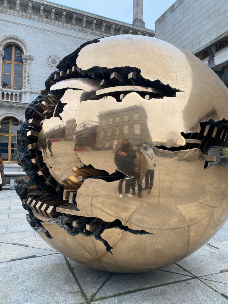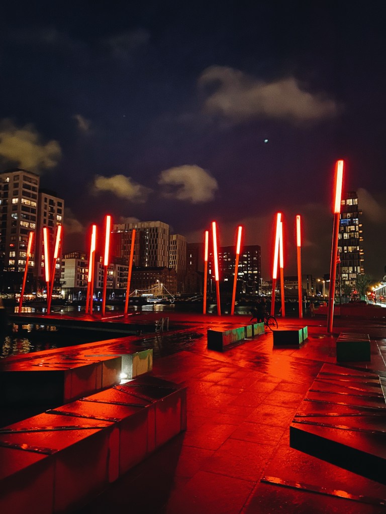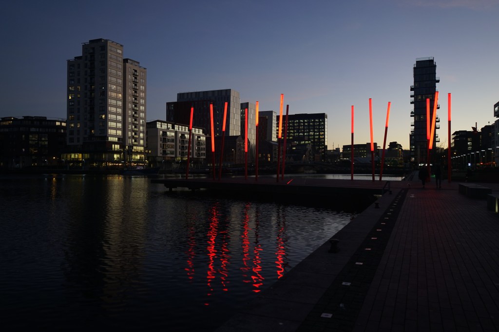 Seguimos dirección del Gran Canal y aquí podremos ver las sedes de Meta (antigua Facebook) y de Google para Europa que están asentadas en este país gracias a los beneficios fiscales que tienen. También podemos encontrar la sede de Apple, Microsoft o Twitter. En esta plaza lo primero que nos va a llamar la atención es su teatro, Bord Gays Energy Theatrey las esculturas rojas que hay en mitad de la plaza que junto a los bancos y mini jardines hacen de este lugar un sitio perfecto para el encuentro con amigos.