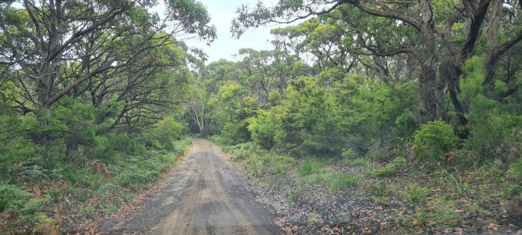 Cogimos el coche y nos fuimos a Wreck Beach. Para llegar tienes que abandonar la carretera B100 (La Great Ocean Road) y meterte por el camino Moonlight Head Road. Es el típico camino en muy mal estado en el que los amortiguadores sufren mucho pero que te ofrece una pequeña aventura de conducción. Puesto que el coche que llevábamos era grandote y de alquiler y a mi me encanta conducir disfruté como una niña.
