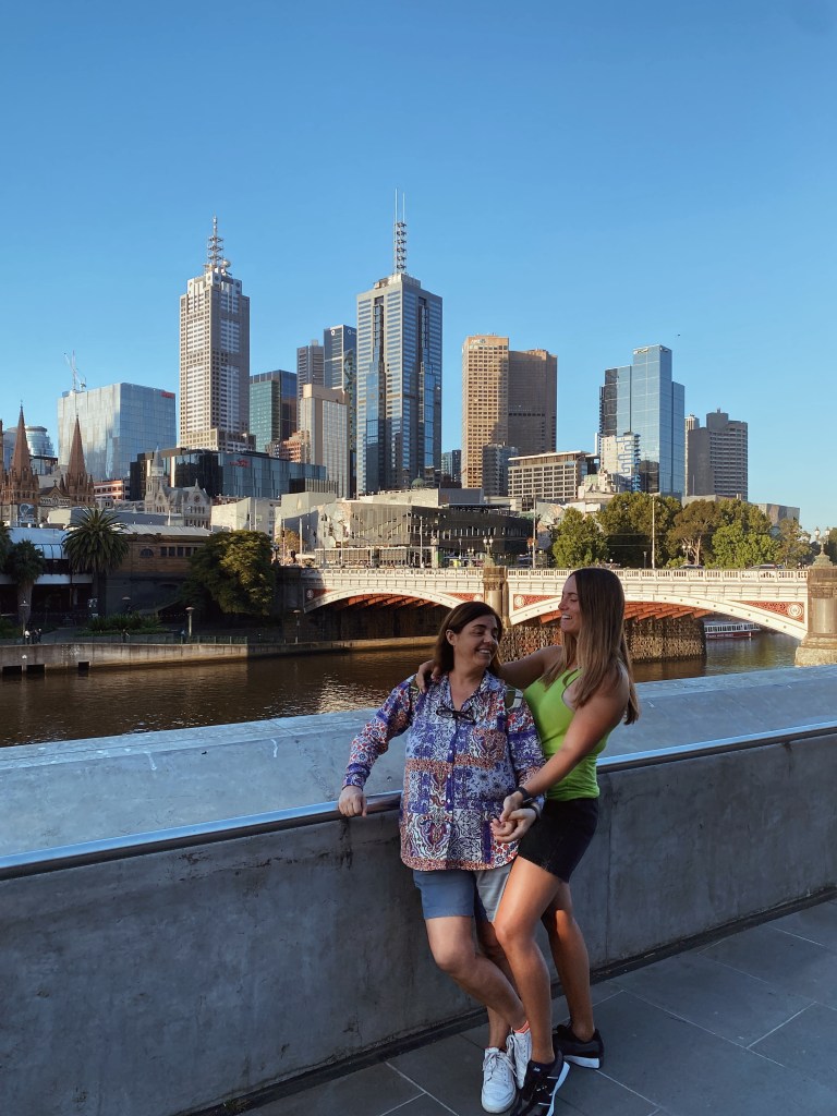 A las 19.30 había quedado con mi amiga Esther en la estación principal de la ciudad, Flinders Station. Así que justo antes nos dimos una vuelta por el río Yarra y nos hicimos una de las fotos más típicas con el puente Princess Bridge y los rascacielos de fondo.