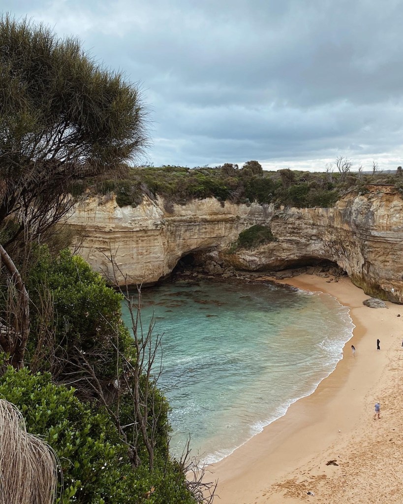 Loch Ard Gorge, nuestra siguiente parada, es un pintoresco desfiladero que alberga una suave bahía de aguas azules y transparentes, y que está flanqueado por dos acantilados. Las vistas desde arriba son increíbles, pero a pie de playa mejoran. Es un sitio precioso para sentarse un buen rato y desconectar.