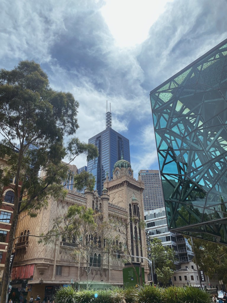 La parte central de Melbourne es una cuadrícula muy fácil de visitar, tanto por su dimensión como por su fácil orientación. Por lo tanto hay que caminar las grandes avenidas dejándose llevar un poco por la corriente humana. Esta te llevará a los puntos más concurridos e interesantes. Pero además de este callejear hay que entrar a las recepciones de los grandes edificios, a los clásicos y modernos. Estos últimos suelen estar diseñados con mucho cuidado y poderío. Hay otros clásicos que son usados como sedes bancarias a las que se puede acceder, por ejemplo en la Collins St 380 hay un precioso edificio neogótico con un salón maravilloso. En conclusión, hay que atreverse a meterse en todos los edificios con buen aspecto.