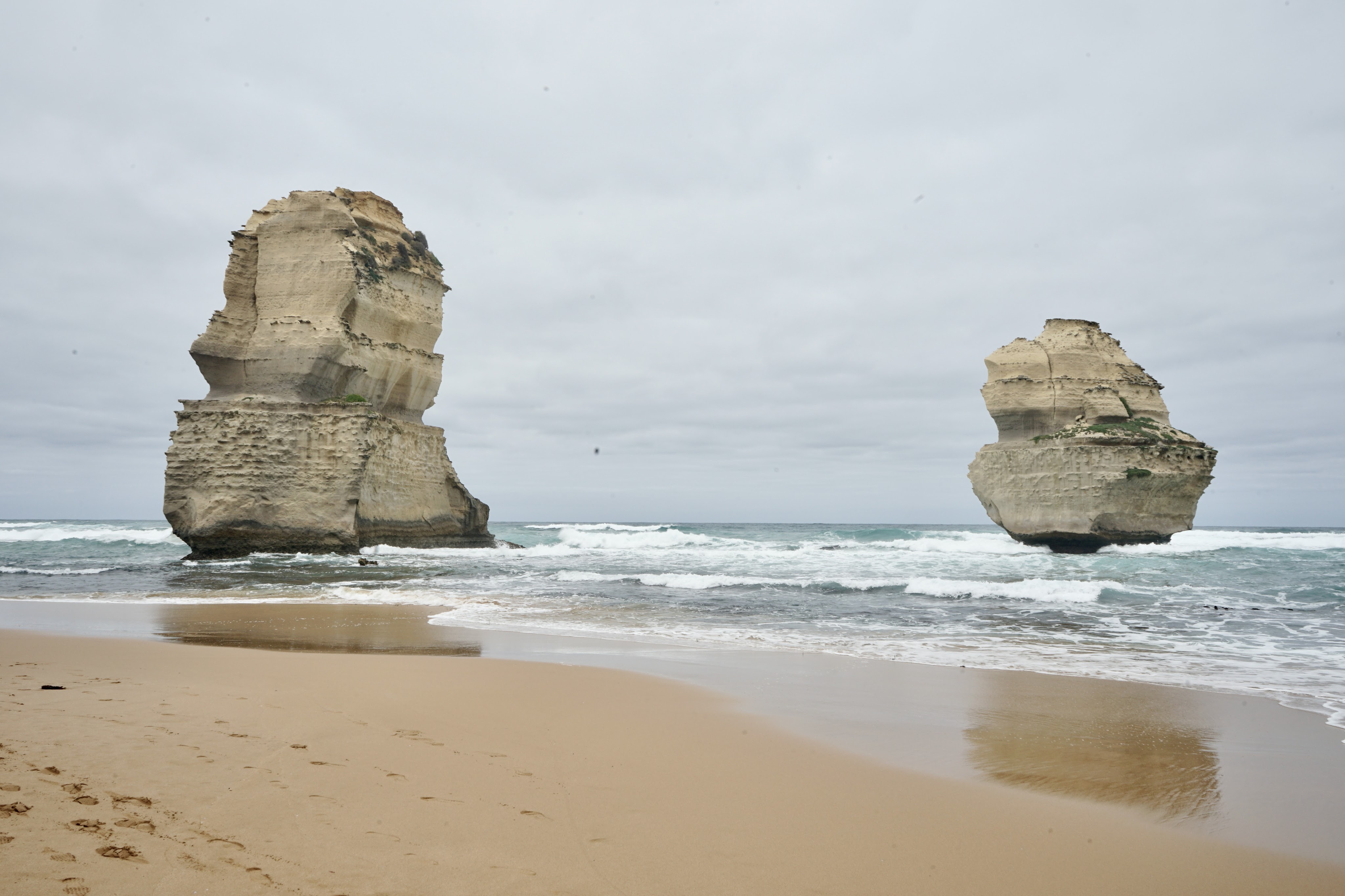 En una gran playa dorada, protegida por una gran pared vertical a un lado y el mar enfurecido al otro aparecen de frente dos pilas de caliza enormes en medio del agua, Gog y Magog. Te dejarán con la boca abierta y ya te van a ir dando una idea de lo que será la siguiente parada… Los 12 apóstoles.
