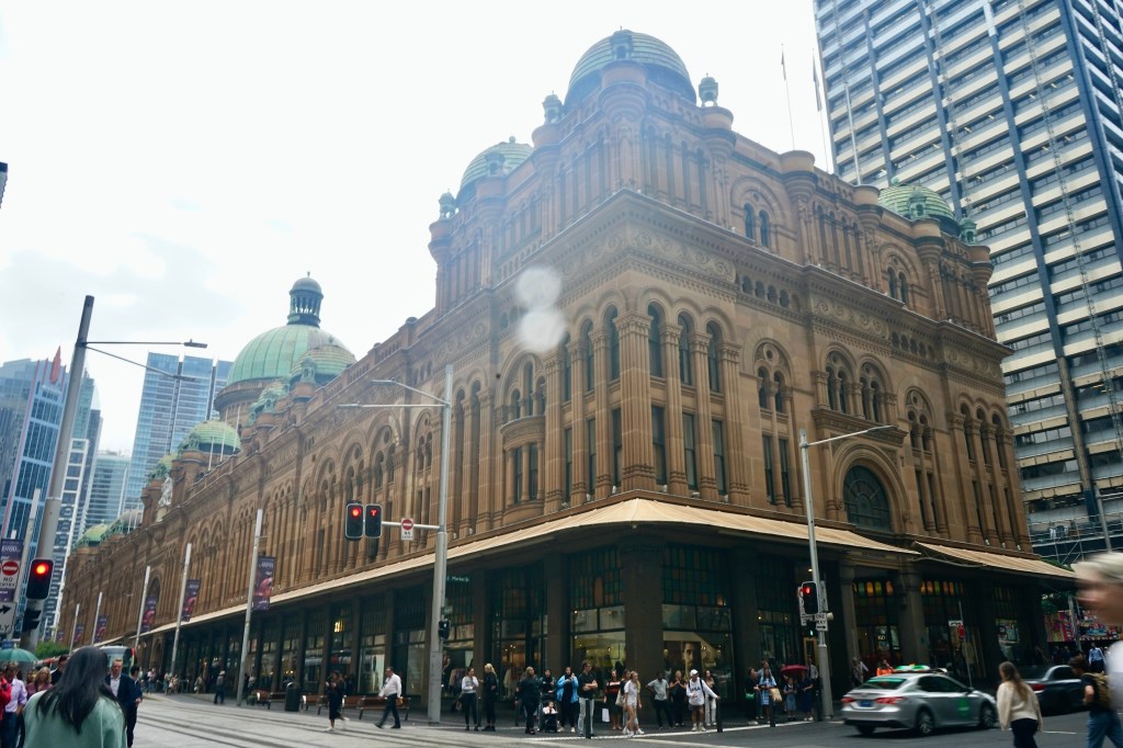 El primer día como estaban cansados del viaje y con las 10 horas de diferencia horaria decidimos hacer una pequeña primera inmersión en la gran ciudad viendo una de las calles principales, George St. Esta calle es fácil de identificar ya que es por la que pasa el tranvía, fue la calle principal original de tiendas y a día de hoy sigue siendo una de las calles más ajetreadas. Además conecta varios de los edificios y zonas más importantes de la ciudad. Pudieron conocer el edificio Queen Victoria que en su interior tiene unas bellísimas galerías de la época del neorrománico y construido entre 1893 y 1898 actualmente tiene 4 pisos llenos de tiendas comerciales y cafés. Justo al lado está el edificio del Town Hall que se construyó en la década de 1880 con un estilo Segundo Imperio victoriano y es el único edificio no religioso de la ciudad que mantiene su función e interior original.