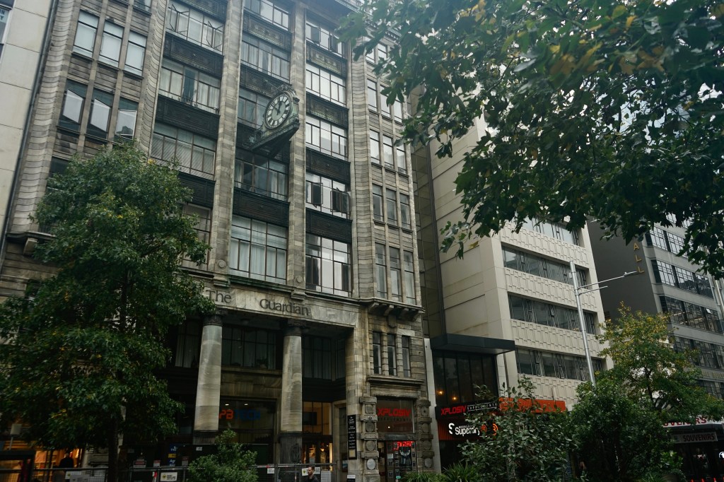 A las 18.00 fui a por mi primera toma de contacto con la ciudad y la verdad es que me defraudó un poco: domingo lluvioso, todas las tiendas cerradas y las calles casí desérticas; los pocos que había eran personas que no tenían un techo donde dormir y lo hacían en las calles principales de la ciudad. Esto último me sorprendió porque Nueva Zelanda está siempre en el Top de los países donde vivir por su calidad de vida y economía.