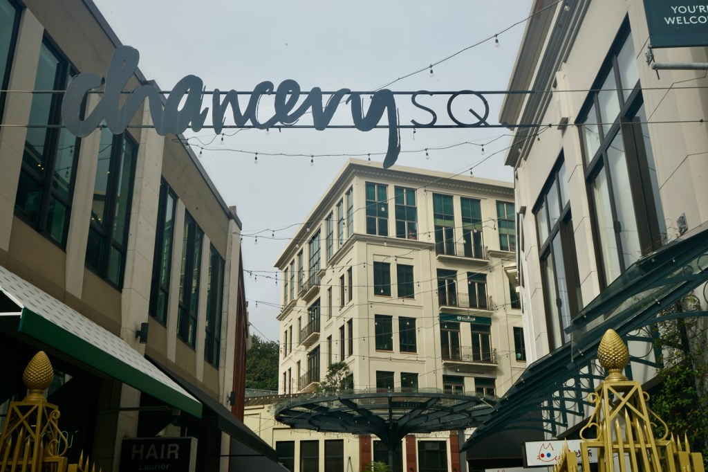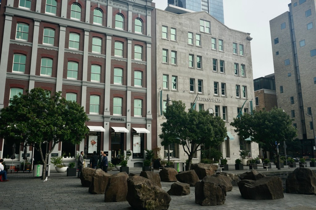 De pronto me encontraba en una plaza, Freyberg Place, donde había un edificio altísimo, secundado por palmeras y cuando seguí echando un vistazo me topé con una calle de edificios de colores bajitos y al fondo un edificio de cristal muy apoteósico, seguí mirando hacia la derecha y había un rinconcito que me recordó a una zona de Beverly Hills que se llama Two Rodeo. Esta plaza, Chancery SQ., estaba llena de cafés y boutiques que junto con lo cuidado que está este espacio, hacen de este lugar un sitio muy especial.