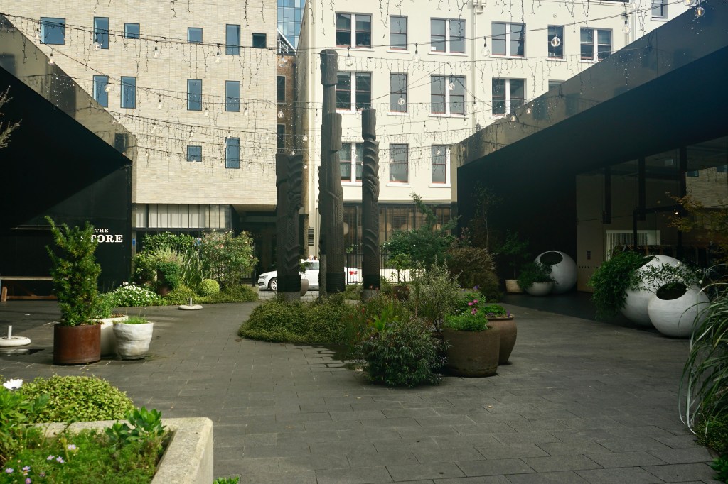 Ya casi estaba en el puerto, pero me quedaba por descubrir la zona de Britomart. Esta zona combina algunos de los edificios patrimoniales más antiguos de Auckland con la arquitectura más moderna. Es una zona llena de restaurantes, cafés, boutiques de diseño. Es otra de las zonas con animada vida nocturna y muy preparada para ello con todas las luces que adornan las calles del barrio.
