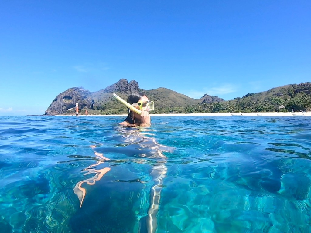 Estábamos llegando a una islita de arena blanca que emergía del océano y empezaron a sacar todo el equipamiento de snorkel. Echaron anclas, era hora de explorar aquellas aguas. Yo decidí ir a hacer snorkel con un instructor que nos guiaría entre corales. Aunque también podías hacer paddle surf, estar en el catamarán o ir a la islita.