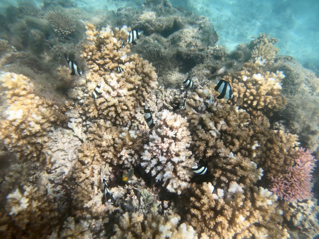 La extrema visibilidad te permite alucinar con la gama de colores y de texturas, tanto de los corales y rocas como de los peces y algas. Entre los corales nadan anguilas, tortugas, peces loro o peces mariposa, mientras que en la arena y rocas se ven estrellas de mar azules (yo la primera vez que vi una me pensaba que era un juguete) y almejas gigantes. Es un completo paraíso tanto en la superficie como bajo del agua, por eso aquí se encuentra la cuarta barrera de coral más extensa del planeta. Pero sin duda lo que más disfrute fue la sensación de sentirme única observadora de este espectáculo natural.