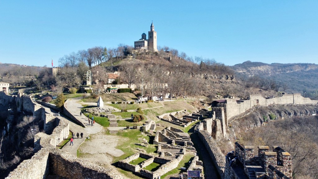 Dejamos el coche en el hotel y fuimos andando a la joya de la corona, la imponente Fortaleza Tsarevets. Aunque ha sufrido estragos a lo largo de los siglos, los restos de torres fortificadas, la muralla, edificios civiles e iglesias, permiten imaginar el poder que ejercieron los zares búlgaros en la Edad Media. Las vistas con el dron son sencillamente espectaculares.