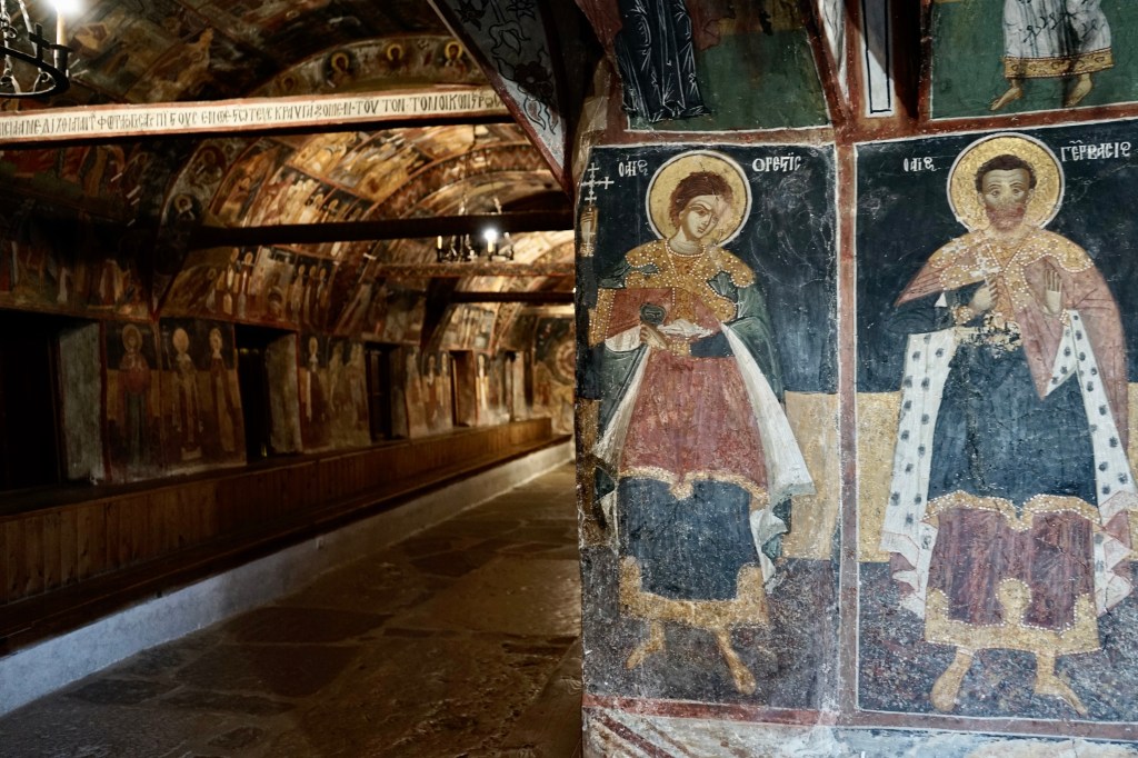 Visitamos la Iglesia de la Natividad de Cristo que desde el exterior los muros de piedra impiden adivinar las espléndidas escenas religiosas que aguardan en su interior. Además es muy curiosa ya que pese a su planta rectangular posee una laberíntica distribución de sus estancias. Pero sin duda lo que más nos sorprendió es que cada centímetro de la iglesia se encuentra decorado y a diferencia de otras iglesias podemos encontrar a parte de las pinturas bíblicas tradicionales, el árbol de Jesé, imágenes de antiguos filósofos y poetas griegos, como Homero, Aristóteles o Platón y hasta el horóscopo. El precio por persona es de 5€.