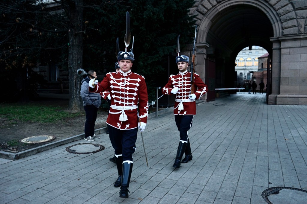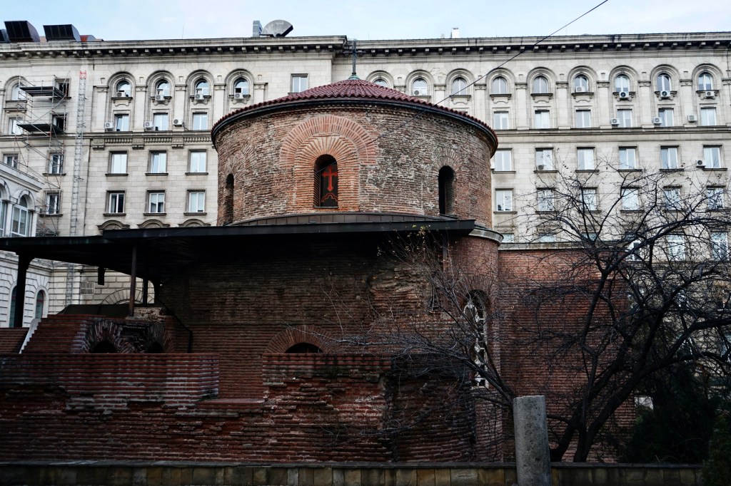 Y terminamos en la Iglesia de Sveti Georgi, la iglesia paleocristiana está considerada el edificio más antiguo de la Sofía moderna y pertenece a la Iglesia Ortodoxa Búlgara. Tiene una estructura cilíndrica con cúpula construida sobre una base cuadrada y está escondida entre los edificios. Al salir dimos con el cambio de guardia de los soldados, ataviados con uniformes rojos y blancos del siglo XIX, que custodian día y noche el edificio de la Presidencia de Sofía, no lo sabíamos pero se realiza cada hora en punto en la puerta principal del edificio en la calle Lege.
